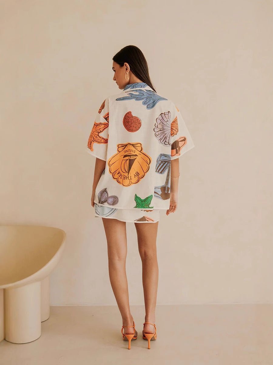 • Oversized printed shirt and wrap skirt set.